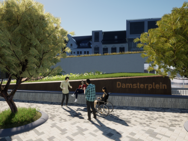 Het Damsterplein is nu een plein met veel stenen. Daardoor wordt het er erg heet in de zomer en kan er wateroverlast ontstaan als het hard regent. Daarom is een nieuw, klimaatbestendig ontwerp gemaakt. De EU heeft hiervoor ruim 1 miljoen euro subsidie gegeven.