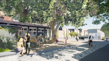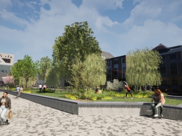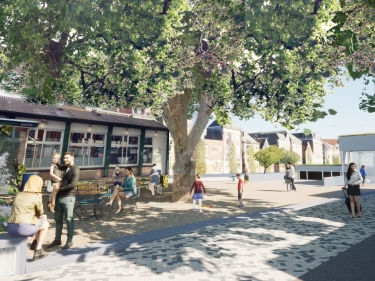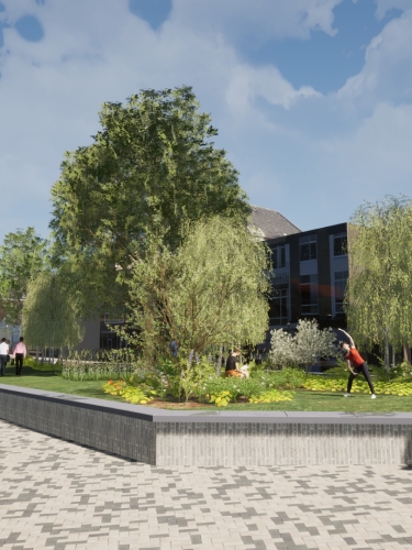 Samen met bewoners, ondernemers en jongeren is een plan gemaakt. In dit plan komt meer groen en kan regenwater beter in de grond zakken of worden opgeslagen. Het plein wordt een koele en fijne plek om elkaar te ontmoeten. Er is ruimte voor kleine activiteiten.