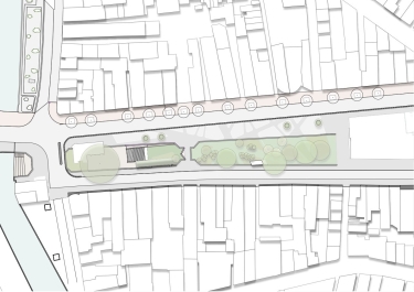 In de huidige bestrating van het plein zijn lijnen te zien die vroeger de gangen en stegen rond het Damsterplein met elkaar verbonden. Deze lijnen laten we terugkomen in de beplanting, zodat er geen verborgen hoekjes ontstaan. In het groen kun je zitten op het gras of onder de bomen. Als er genoeg geld is, willen we ook een educatief onderdeel toevoegen, zoals interactieve informatie over de planten en hun waarde voor mensen en dieren. Langs de gevel van het oude wachtlokaal, dat nu een restaurant is, komt een groene plantenstrook. Zo sluiten alle onderdelen van het plein goed op elkaar aan.