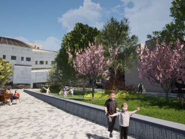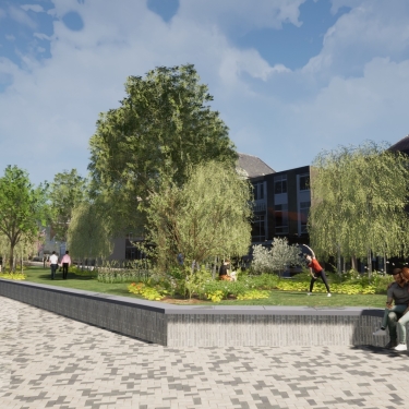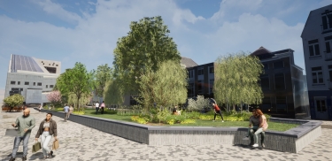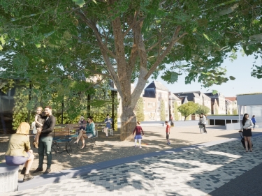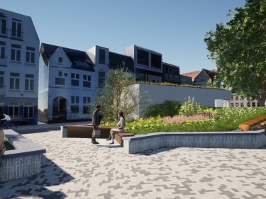 Seating elements, space for bicycles and a play element will be built around the green islands on the square. Much attention is paid to the accessibility of the square. We think it is important that it becomes a square for everyone. In addition to adjustments to the square, we are also looking at possible adjustments to the road structure around the square, so that traffic has a less negative influence on the experience of the square. In addition, we want to ensure less noise from traffic and a reduction of particulate matter in the area.
