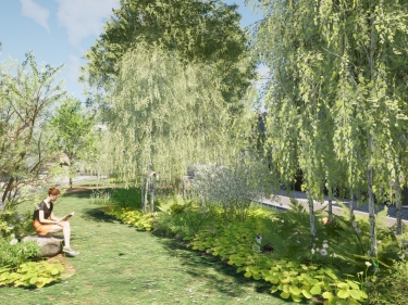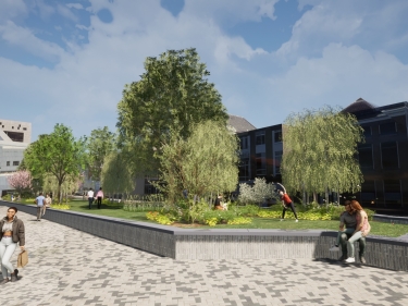 In a ‘sponge city’ you use natural solutions, such as holding water in the soil and storing it for dry times. We want to place green islands on the deck of the underground parking garage, with plants and trees that are both resistant to drought and moisture. We also want to use ‘bioswales’. These are channels where rainwater can flow and where it is filtered by plants. And we want to create a water storage facility to reuse water. With these measures we hope to prevent flooding and extreme droughts in the future.