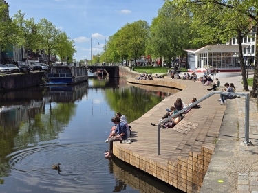 “Ik ben al 43 jaar waterbouwer, ben ooit begonnen op mijn 18de, en dit is het allermooiste wat ik in mijn loopbaan gedaan heb en ook het meest uitdagende. De vorm van de vlonder, de rondingen, de kopse kanten. Het is echt prachtig. Kijk, je kunt als architect wel iets bedenken, maar het moet ook nog gemaakt worden. Dat is geweldig goed gelukt en daar ben ik best trots op. Als ik over de Ebbingebrug wandel en ik kijk naar beneden naar de vlonder en ik zie al die mensen erop. Zó mooi.”