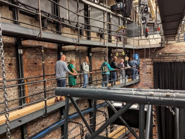 Vriendinnen Marjan en Marleen lopen al kletsend het Grand Theatre uit. Ze hebben net een rondleiding gehad. “Prachtig om al die hokjes en ruimtes, waar de geluids- en regiemensen zitten boven in het gebouw te zien”, vertelt Marjan. “We mochten over een eng trappetje en bruggetje omhoog. Het is heel hoog weet je dat?” Marleen vond het vooral leuk om te weten dat er ook theater gemaakt wordt hier. “Dat wist ik eigenlijk niet. Gezelschappen beginnen helemaal bovenin te oefenen. Als ze dan bijna klaar zijn met hun productie, gaan ze een verdieping lager en als ze voorstellingwaardig zijn, treden ze beneden op. Erg leuk.”