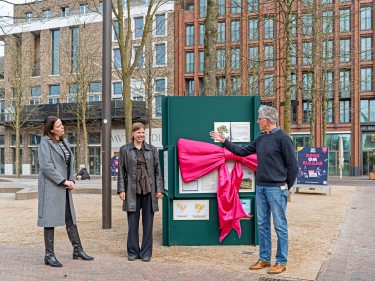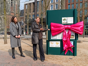 Wethouder Wijnja onthult informatieborden over bomen en klimaat