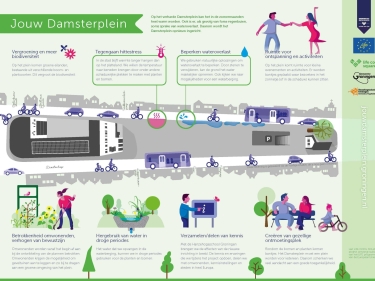 De gemeente Groningen krijgt € 1 miljoen euro van de Europese Commissie voor het uitwerken van eenhet plan om het Damsterplein groener te maken. In 2020 is hiervoor een aanvraag ingediend bij het Europese LIFE-fonds. Met het LIFE-programma wil de Europese Commissie projecten stimuleren die passen binnen het Europese beleid van natuur, klimaat en milieu. De aanvraag voor het Damsterplein is al goedgekeurd. Op dit moment wordt er – samen met de omgeving - hard gewerkt aan een ontwerp. Waarschijnlijk is het Damsterplein in 2026 het ‘coolste’ plein van Groningen.