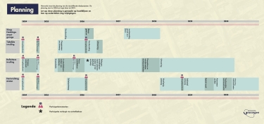Deze kaders zijn in 2025 meegenomen bij de voorselectie van een ontwikkelaar die de locatie gaat herontwikkelen. Er zijn nu drie ontwikkelaars geselecteerd die aan de slag gaan met een ontwerp. Deze ontwerpen worden tijdens Let’s Gro 2025 gepresenteerd. Inwoners van de gemeente kunnen meebeslissen door te reageren op de verschillende ontwerpen. Op basis van de reacties en het advies van een vakjury wordt er een ontwerp gekozen. De gekozen ontwikkelaar gaat het ontwerp daarna verder uitwerken. Waarschijnlijk kan er in 2027 worden gestart met de bouw. De werkzaamheden zullen dan ongeveer 1,5 tot 2 jaar duren.
