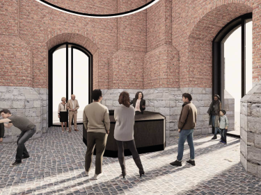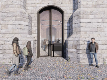 - Centrale entree: in het torenportaal komt een centrale, transparante toegang voor kerk én toren. De entree is gericht op de Grote Markt, die net een complete metamorfose heeft ondergaan: groen en gastvrij. De entree sluit daarbij aan. Grote glazen deuren die overdag geopend zijn, nodigen uit om binnen te komen. Zichtbaar, vanzelfsprekend en toegankelijk – een monument waardig.
